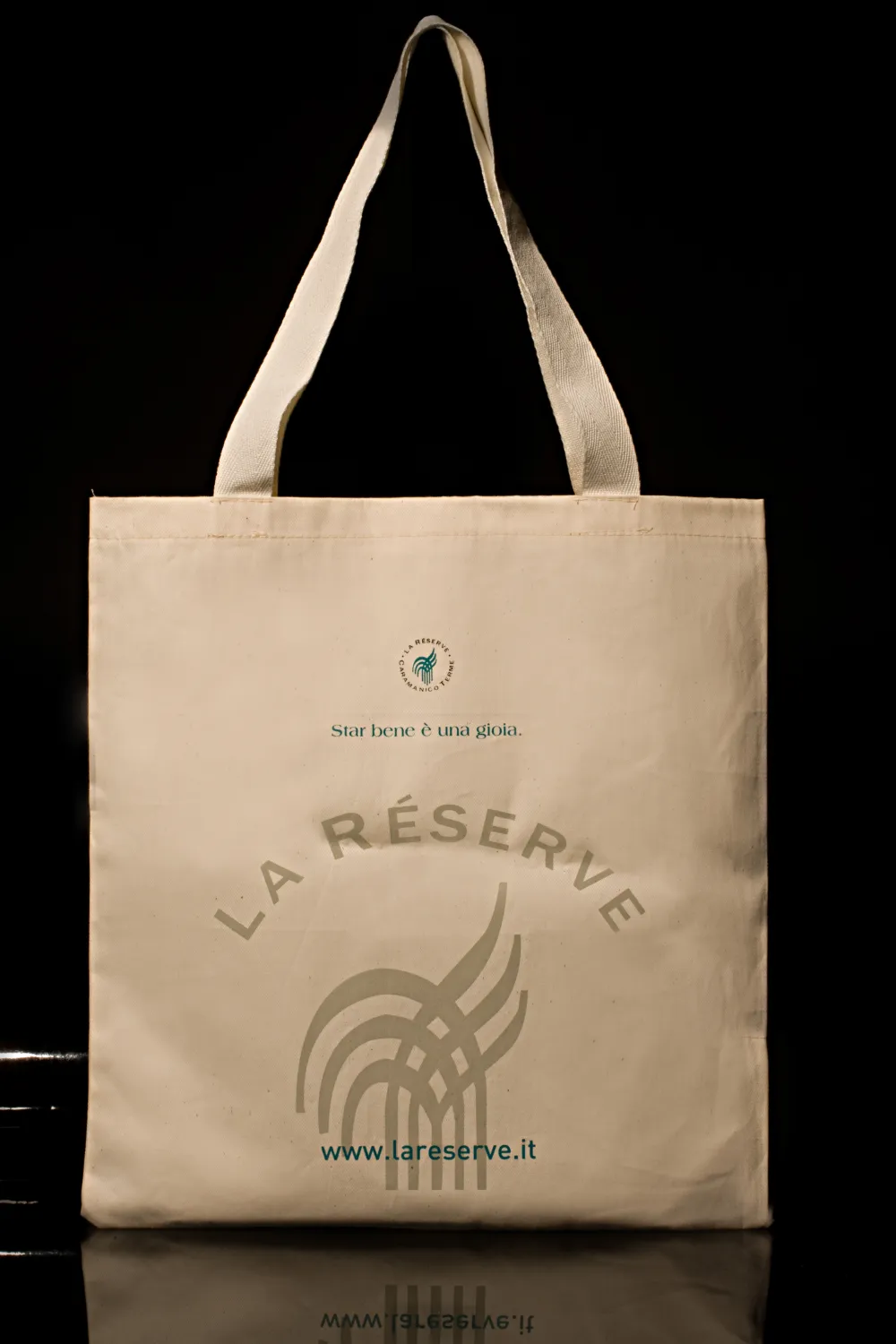 Busta shopper in cotone naturale, con manici lunghi, personalizzazione fino a 4 colori.